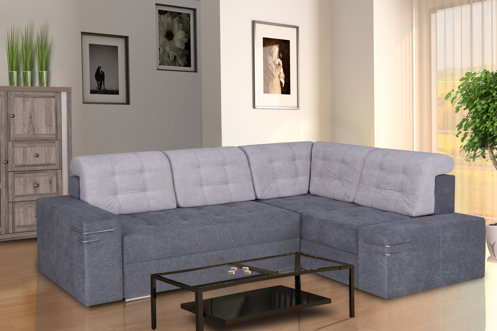 Narożnik SILVER II Boki, strona prawa, nikiel / Power 13, poduchy Power 11
